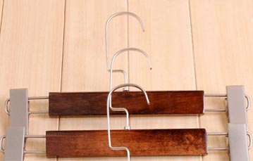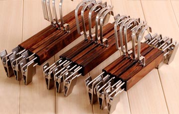 Móc treo quần áo bằng gỗ với thanh gỗ có 2 thanh thép không gỉ được xỏ qua lỗ khoan sẵn. Hai đầu bên kia được đính những chiếc móc kẹp giúp cho chúng ta khi kẹp vào quần được chặt hơn. Với những kẹp được làm bằng lò so nên quần áo sẽ được cố định khi chúng ta di chuyển từ chỗ này sang chỗ khác.