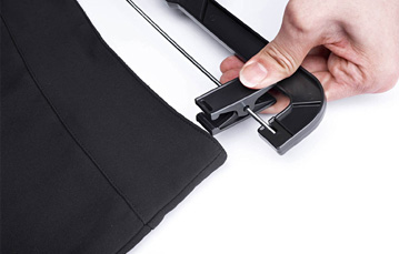 Mẫu móc kẹp với thiết kế nằm ngang được bo tròn hai đầu. Phía trên móc được gắn với thép không gỉ nên tiện dụng khi treo quần áo mà không bám bẩn. Độ rộng của móc treo phù hợp với thang ngang tiêu chuẩn nên có thể dễ dàng lấy xuống hoặc treo lên.